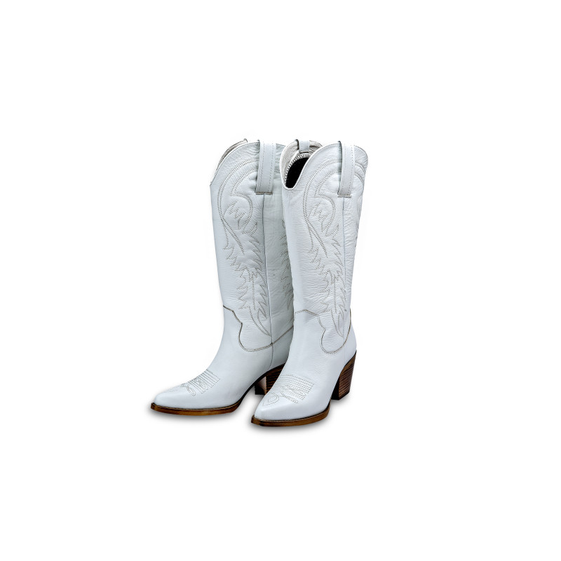 Beyaz Deri Orijinal Kadın Western Çizme