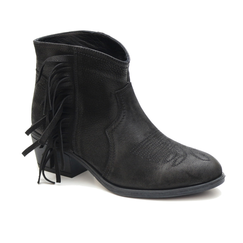 Siyah Renk Hakiki Mumlu Deri Püsküllü Dallas Bot |