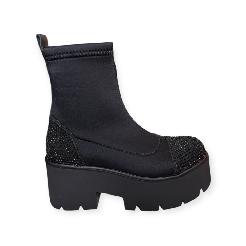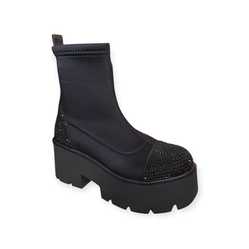 Önü ve arakası taşlı,kalın tabanlı ,içi deri,streç kadın bot